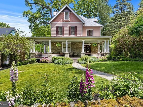 Welcome to Quick’s View! Martin Luther Kohler purchased a ten acre parcel in 1886 from Henry Lippincott to develop new housing for the families that were striving to leave the city for the country life. A total of 16 parcels were created on those 10 acres. In researching the history of the property, a newspaper article from October 6, 1892 had the following entry, “House and lot in Cheltenham, T.J. Dougherty to Harriet B. Quick, $6,000.” She was married to Abram Feaster Quick. Mr. Quick was a dry goods merchant, and that’s about all we can find out about the original family. What stands today at 313 Maple Avenue is an understated Victorian, filled with period details in the main house & the carriage house. A stone wall extends the entire length of the front yard. There is a sidewalk to the wrap around porch & a driveway that extends through the porte cochere to the carriage house. On the front entry door, you’ll find the original turn-type door “bell” remains a functioning welcome for guests to the home right in the door itself. The entry foyer is quite large with a built-in bench located under the staircase. The front parlor has another set of French doors that lead down to the porte cochere. A large cased opening doubles the living space into the living room with a bay & built-in window seats. The fireplace is enhanced with a gas insert. The original wood floors have an inlayed border in a Greek key detail. There is a coat closet under the staircase before entering the dining room. The original built-in china cabinet has beautiful leaded glass doors. The bay window overlooks the side yard. There are leaded glass windows throughout the front three rooms. The butler’s pantry retains one original cabinet & a powder room was added off this space. The kitchen was just renovated in 2024 with new quartz counters, plumbing, fixtures, sink, cooktop and flooring. One original cabinet from the 1890’s remains and is a beautiful contrast (in natural wood) to the white painted cabinets throughout the rest of the kitchen. The island can seat 3 people & a walk-in pantry. The primary bedroom overlooks the front & side yards. A smaller room is a perfect home office that has French doors to the roof over the front porch. Another large bedroom has been outfitted with a built-in closet organization system, making the entire bedroom a large dressing room & closet. The rear bedroom has windows facing south and east. The 1st hall bathroom has a stall shower. The 2nd hall bathroom was renovated in 2016 with a beautifully detailed tub & shower combination (with a rain shower) and an extra-large, dual vanity. Both of the bathrooms have leaded glass windows that provide for privacy. On the 3rd floor, the rear bedroom is the largest of the rooms and has a window overlooking the carriage house. The side bedroom is currently set-up as another “work from home” space. The final bedroom on the 3rd floor overlooks the side and front yards. There is one more room on the 3rd floor that does not have a closet, and is simply used for storage. A large portion of the back yard is fenced for your two or four legged family members. Outside the carriage house there is a small fish pond along with a large patio & pergola. The pergola has lighting amongst its rafters and a beautiful wisteria that blankets the area with blooms in May. The carriage house that remains much like it was when first constructed. While many of the elements of the horse & carriage days are gone, it retains the original beadboard walls, horse stall windows, tack room & even the remnants (non-functioning) of a bathroom. The carriage bay on the left side can accommodate two vehicles. The remaining space is a blank canvas that someone needs to envision as an amazing arts studio, home gym, mancave or sheshed. There is full electricity to the carriage house, and new plumbing lines (water only, not sewer) that are ready to be connected to the main house by the next owners.