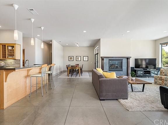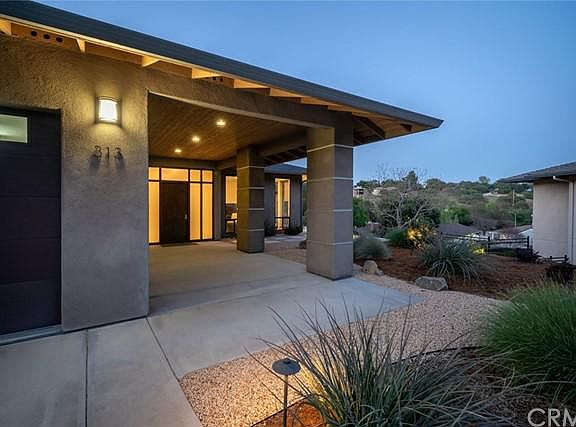 Welcome to this stunning contemporary home with a mesmerizing view and located in the much-sought-after westside foothills of Paso Robles! Paso Robles has gained international fanfare as a wonderful place to enjoy world class wineries, fine dining, as well as small town charm and hospitality. This special property, truly a rare find, is elegantly positioned at the top of Maplewood Estates and is an easy walk, drive, or bike ride to the charming and historic Paso Robles Downtown City Park. This unique home boasts concrete floors, modern lighting, solar tubes, vast windows, sliding glass doors, and an infinity concrete patio with built-in benches. Surrounding the home is a lovely nature-filled backdrop, making it the perfect environment for entertaining. The expansive entrance and patio are both covered and further enhanced by recessed lighting and a natural, exposed wood ceiling. The phenomenal floor plan is open-concept including the kitchen, dining, and living room. The living room has a gas-burning fireplace with slate surround and a wood mantle. The chefs kitchen features an island that can seat up to 7, and comes complete with a stainless steel appliance package including a 5-burner cooktop, refrigerator, and other essentials. The kitchen also includes a beautiful solid countertop surface, a pantry, modern cabinets, and a natural stone backsplash. Paso Robles is in the vein of this home with a special wine room which is accessed through double pocket doors adjacent to the kitchen. The owners suite comes with an immense walk-in closet and a gorgeous bathroom which includes an oversized bathtub, tiled shower, and dual sinks. This suite also enjoys breathtaking views. The two guest rooms, each with a personal walk-in closet, are on a separate wing with two guest bathrooms. Inside the home is an over-sized laundry room which has both 220 and gas hook-ups, a stainless sink, abundant cabinets, and convenient countertop spaces. The 15,548 sq ft parcel has drought tolerant landscaping and contemporary hardscape. The extensive concrete driveway allows for many cars to park privately and leads to a very spacious 3-car garage.