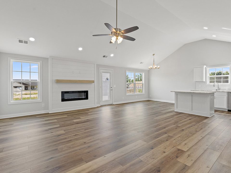 Welcome to this elevated new construction home, complete with all the upgrades to make it your perfect home! A stylish 3BR/2BA ranch nestled on just under .21ac level lot. With a desirable split BR layout, privacy is available for all. High vaulted ceilings adorn the great room, creating a luminous and inviting atmosphere, complemented by an electric fireplace with striking trim detail. The fully equipped kitchen features white cabinetry, granite countertops, and stainless steel appliances, complete with a large pantry & dining space. The owner's suite offers a lavish retreat with a tiled shower, dual sinks, and a spacious walk-in closet. Two additional generously sized BR ensure ample space for all. A sizable laundry room, level yard, meticulous trim detail, and oversized garage complete this property. Enjoy the elegance of laminate and tile flooring throughout, making this home a haven of comfort and style.