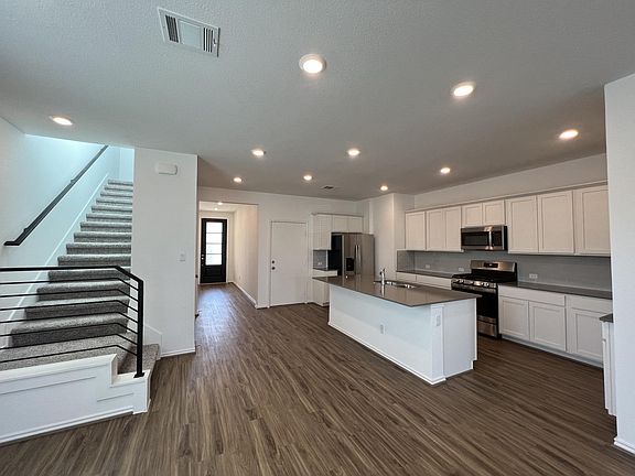FIRST MONTH RENT FREE. Adorable 2022-built new home in the desirable Rancho Sienna neighborhood, overlooking the fountain, catch-and-release pond, and walking path. Enjoy beautiful scenic views from the generous windows across the back of the home. The cozy backyard features a wrought-iron fence for an open view with no backdoor neighbor. Vinyl laminate flooring in living spaces and kitchen. Inset lights throughout the home, modern stair rails, and a spacious laundry room with a washer and dryer. This corner house, situated next to a green belt, offers four bedrooms and 2.5 baths. The kitchen has an open concept, bringing in plenty of light. The large master suite includes a shower and tub combo, along with a spacious walk-in closet. The neighborhood boasts a pool, amenity center/clubhouse, parks, and hiking trails. Conveniently located near Ronald Reagan Blvd, Hwy 29, and a new HEB. Smart home features are included. Fridge, washer, and dryer are also provided. Great location near employers, trails, and other amenities. Tenant responsible for gas, electric and other utilities.