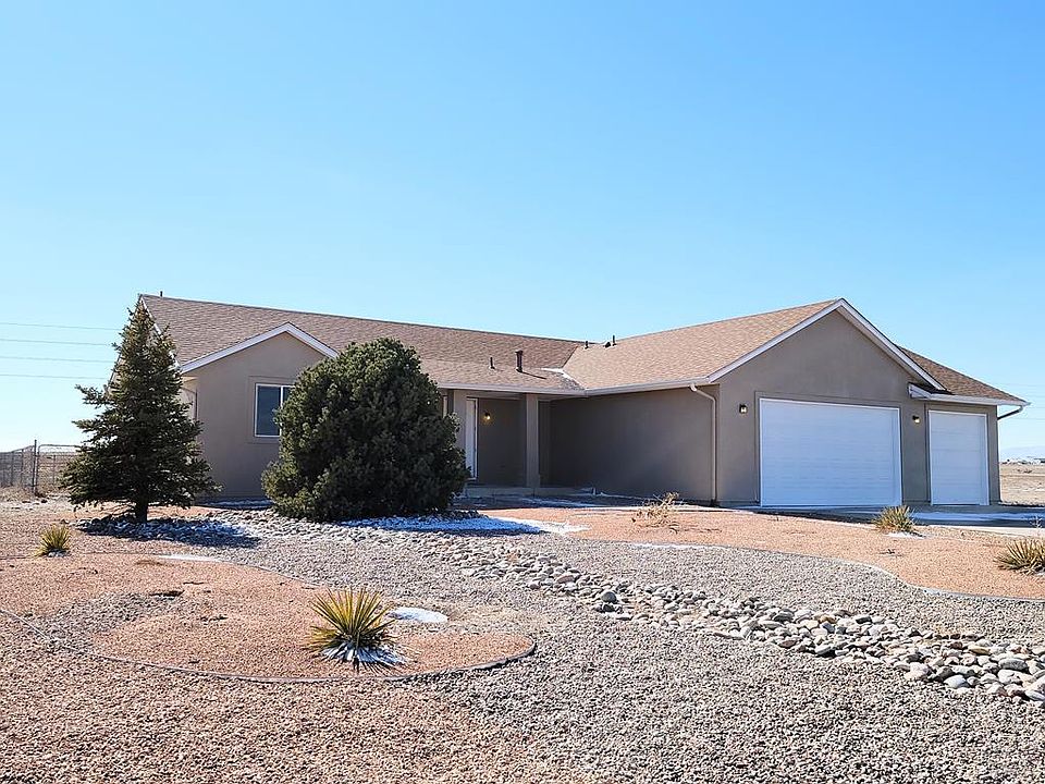 Price Adjusted! This Beautiful home has it all! Finished Basement, Extra Acreage, Views and Location, Location! This 5 Bdrm, 3 Bath home sits on 2 1/2 acres! You will have Amazing unobstructed mountain views, privacy and peace and quiet! Large Equestrian Easement to the rear of the property means no neighbors behind you, just open space! The best part? You won't believe how close you are to all the Pueblo West services, Safeway, Walgreens, Medical, Restaurants, etc.. (only 1 mile away) and just 5-10 mins to town! Generous sized Great Room with Vaulted ceiling and Fireplace, Split bedroom design with a Large Master suite featuring a 5 piece bath, Step in shower and a huge soaking tub and walk in closet. Big open kitchen with plenty of cabinets and even a large bar area for extra seating and counter space. Stainless steel appliances stay. New Garage Door. Fresh interior paint inside. Exterior has fresh paint also. Fenced backyard with a drive through gate. There is also a huge storage shed for your toys/tractor. This property has so much extra room to store anything you want plus space to build a shop, RV garage or Horse set up. With the extra acreage and Equestrian trails this is the perfect spot to make it your own. Pretty Xeriscape landscaping is low maintenance. Seller is offering a $5000 carpet allowance. Agents, please set up showings with Re/Max Assoc. front desk. Seller is willing to offer a $5,000 carpet allowance and a $2,000 appliance allowance.
