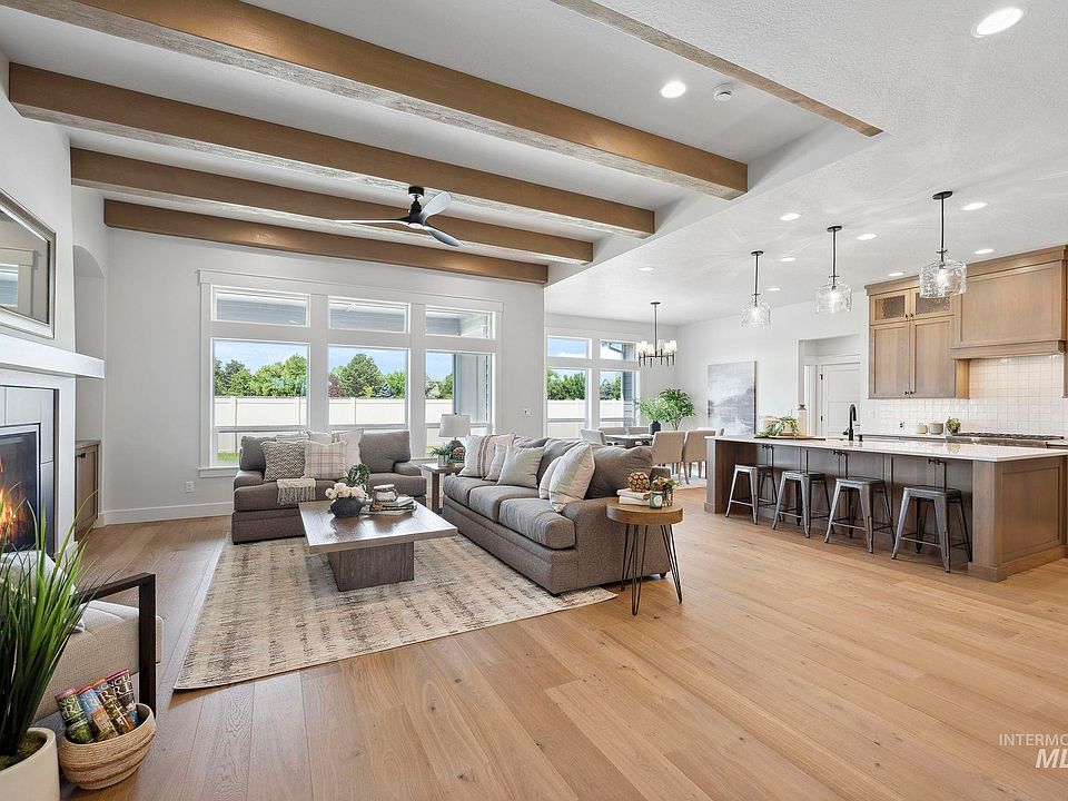 Selway Model | Blackrock Homes. Quick Move-In Ready! Benari offers one of Eagle’s most desirable locations. The open-concept plan centers around a stunning kitchen, dining, and living space and abundant natural light. The luxe primary suite includes a spa-like bath with makeup vanity and a walk-in closet. Two additional ensuites, a 5x14 storage room, and a landscaped, fenced yard complete the home. Enjoy community pickleball courts, fenced dog park, and POOL coming in 2026.