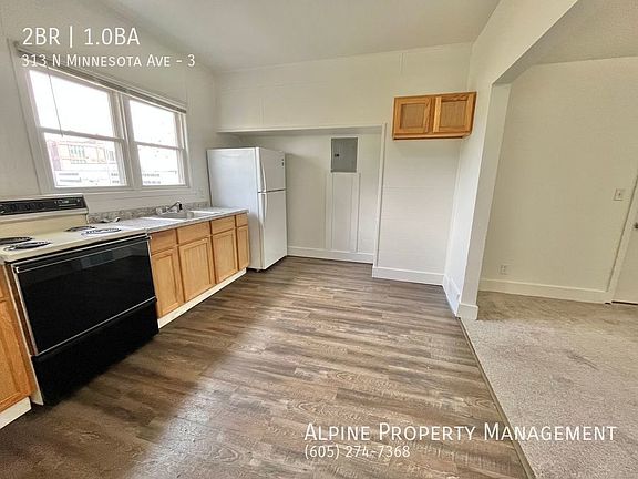 Call today to schedule a tour of this very affordable 2 Bed apartment for rent near downtown Sioux Falls at 313 N Minnesota Ave #3! This spacious ground floor apartment has carpeted bedrooms and living room and a nice eat-in kitchen with stove and fridge. The bathroom has a tub shower and linen storage directly outside. The bedrooms have lots of closet storage and the master bed even has a built-in desk workspace. There is off-street parking for tenants. - $50 application fee per adult - $745 security deposit - Pet friendly(2 max) and non-smoking - Tenants pay gas and electric - Landlord provides the water, garbage, lawn/snow care! - Section 8 accepted - Alpine Benefits included for $25/month extra (see website for full details) Professionally leased and managed by Alpine Property Management Built In Desk Workspace Garbage Large Bedroom Closets Lawn/Snow Linen/Closet Storage Non Smoking Online Tenant Portal Pet Friendly Secured Entrance Stove Tub Shower Water And Sewer Water Garbage Lawn/Snow Included With Rent!! Window A/C Provided