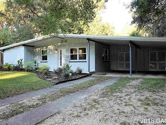 This stylish mid-century home is located 2.5 miles to the stadium and close to several shopping centers, restaurants, and movies. It is not only in a great location but it has also had significant work done to make it move in ready and updated. New metal roof in 2010. In 2017, new fence, new HVAC, fully renovated kitchen with custom cabinets, new floor in living area, fully painted inside and out. Wall in kitchen removed during kitchen remodel to create an open flow between kitchen and living room. In 2018 new windows, gutters, and front door. Other renovations include salt water conversion in pool with resurfacing and new pump and filter. The enclosed porch overlooking the pool adds nearly 200 square feet to the home that is not included in the heated/cooled square footage. Termite bond through Ecopest through March 2019.