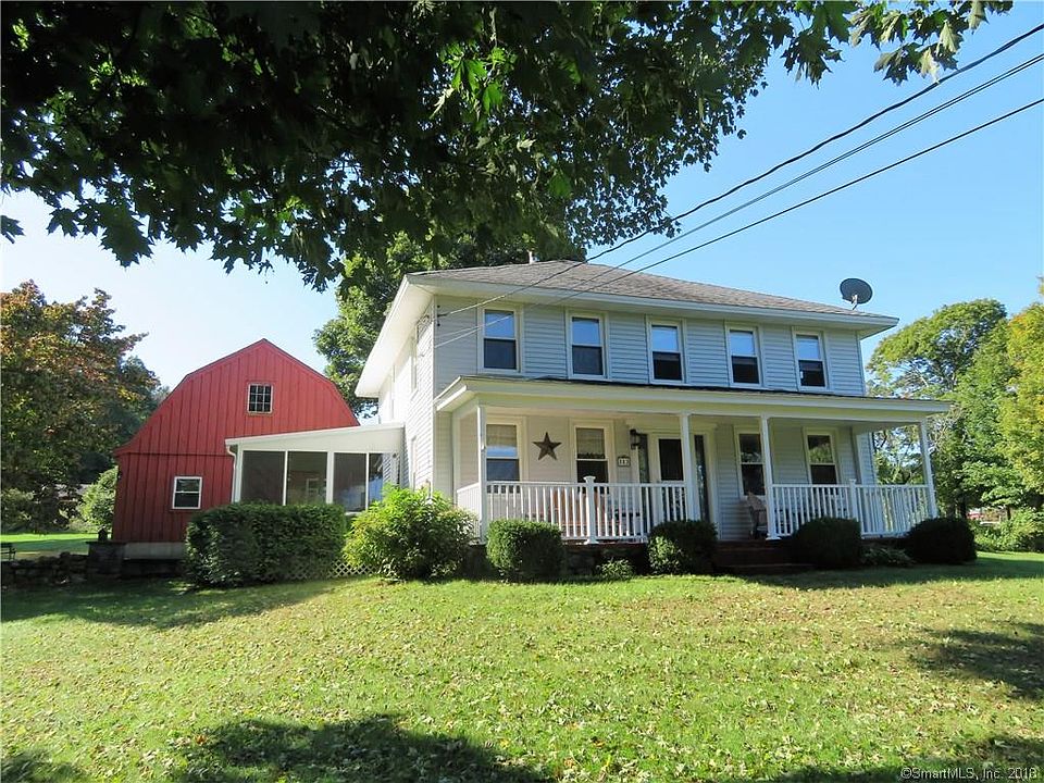 Salem Farm House built in 1865 with large front porch. Loaded with character and updates! 3BR/1.5BA with large remodeled eat-in KT with SS appliances, formal LR and DR. Center hall staircase to upstairs. Three large bedrooms with wide board floors. Spacious 3 season glass enclosed Sun Room. Two story garage with plenty of storage or great for workshop. Serene backyard setting with level yard with paver patio and hot tub.
