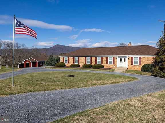 Stately Full Brick Rambler on Pass Run! Magnificent mountain and valley views surround you at this one of a kind offering! The 12+ open acres boarders Pass Run for approx. 650 ft. There is a barn with several stalls and hay loft. The acreage is fenced and ready for farm animals! The home has been meticulously maintained over the years. Several of the highlights of the home include: family room w/ fireplace, formal dining and living rooms, large pantry, eat-in kitchen, three large bedrooms, primary bedroom enjoys private en suite bath, large two car attached garage and large rear deck. This property is not subject to an HOA or any restrictive covenants allowing for endless possibilities with usage! Don't miss out on this special property!