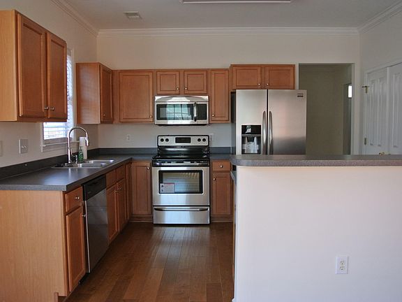 WOW! This home has so many upgrades it seems to be brand new! Wood flooring was just installed throughout the whole first floor. Brand new neutral carpet is upstairs. Fresh paint gives that new home feel and smell. The kitchen features brand new stainless refrigerator, stove, microwave and dishwasher! The sink, faucet and disposal are also brand new! This home features an open floor plan. The dining room is very large and opens via french doors to a front patio. The kitchen has maple cabinets, a double door large pantry, raised bar and opens to the breakfast area and family room. Lots of windows makes for bright, sunny spaces. Upstairs the spacious master bedroom with a tray ceiling, opens to a balcony and has a large walk-in closet.The master bath features a double sink vanity, garden tub/shower and a big linen closet. There is a 2 car garage with door opener. The backyard is enclosed with a 4 foot vinyl fence, has a brick patio, and there is a storage shed attached to the back of the home. Window screens are all brand new! Home is located on a very quiet street. Neighborhood amenities include pool/clubhouse, soccer field, sidewalks, and walking paths!