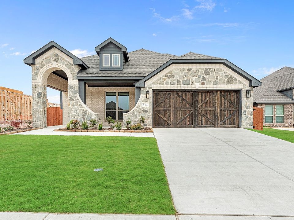Bloomfield's Dogwood III is a two-story featuring 4 bedrooms, 3 baths, and a gorgeous open-concept living space flooded with natural light. Attractive Brick & stone exterior with a fully-bricked front sitting porch, gutters, exterior lighting, and an 8' front door sitting on an interior lot. Inside, the Family Room merges with the Kitchen, allowing an abundance of natural light to brighten the room. 3 bedrooms downstairs including the comfortable Primary Suite and Study. The heart of the home is a Deluxe Kitchen in a timeless white color palette which features a spacious island, custom cabinetry, exotic Granite countertops, and built-in SS appliances. Vaulted ceiling and a stone-to-ceiling Fireplace were added in the Family Room with an overlook from the above Game Room. Don't miss this incredible opportunity to make this newly constructed home your own. Contact or visit Bloomfield's model at North Grove today!