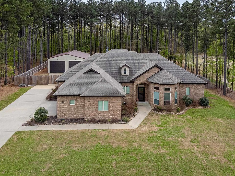 Take a look at this all brick, 4 bedroom, 3 full bathroom, 1 level, all electric home with a wood burning fireplace sitting on 1 acre with a fully equipped 3 bay 30x50 heated shop. The kitchen offers great cabinet space & countertop space with KitchenAid appliances & a large walk-in pantry. Hardwood floors flow through the main living areas. Split floor plan and private office or bonus area with great natural light. The oversized garage fits extended cab trucks & has additional space for storage! Behind the house offers private greenspace. Fully fenced yard. French Drains. Gutters. Generator Ready! Freshly painted. Come see today!