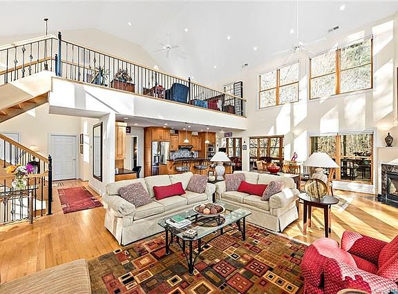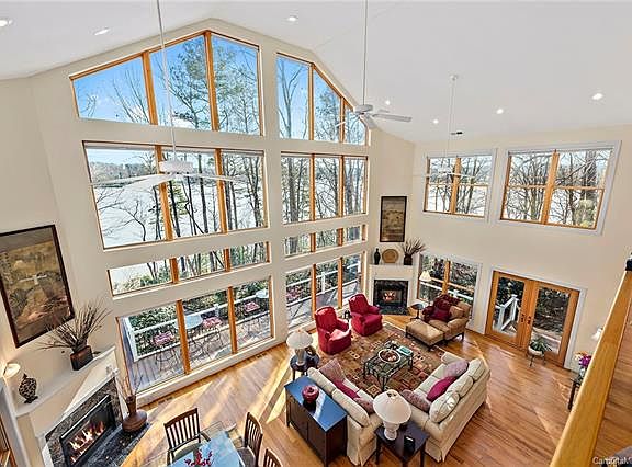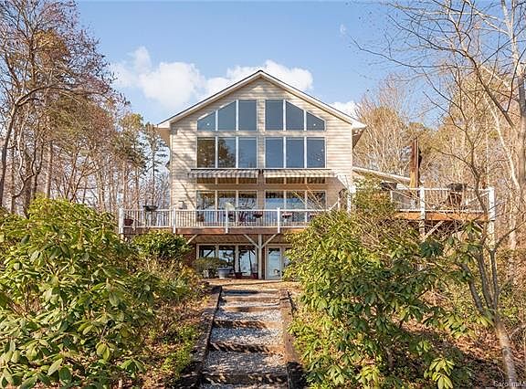 Absolutely stunning, custom waterfront home on Lookout Shoals Lake in the gated community of Riverwalk. Situated on almost two acres, this remarkable home has amazing main channel water views from almost every room. The wall of windows in the main living area is a showstopper with unparalleled views. With no detail spared, this home boasts many great features including a two story living area, two fireplaces, beautiful hardwood floors throughout main and upper level (except for baths), quartz countertops in both kitchens, stainless steel appliances, floating stairs, loft style master bedroom with uncharted lake views, walkout basement with 2nd kitchen with wine cooler and refrigerator, and so much more! You can enjoy the wonderful lake views from the wraparound porch with Fiberon decking or from the private dock and boardwalk. And if that isn't enough, there are separate living quarters above the garage with its own entrance! This is a truly one of a kind home!
