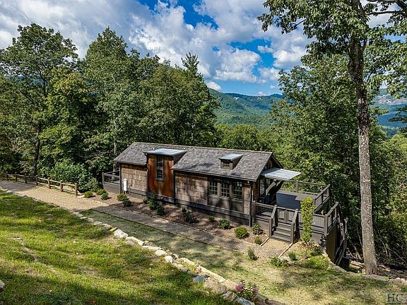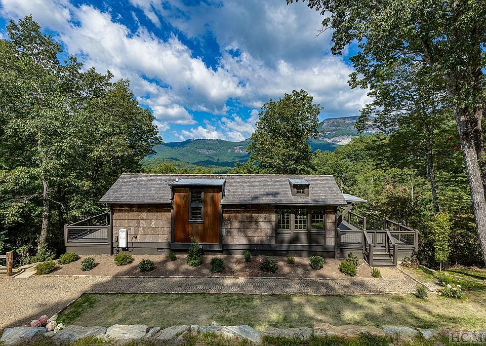 COMP PURPOSES ONLY The Preserve at Whiteside Cliffs is located off of Whiteside Cove Road and is centrally located between the township of Highlands and the community of Cashiers. This home is a special design, the upper level is the Clayton Homes Designer Series by Jeffrey Dungan Architects featuring 7 inch hardwood flooring, pine shiplap walls ,and ceiling with real cedar beams. The living room has 12 foot 3 inch ceilings and floor to ceiling windows. The kitchen boasts wood cabinetry, quartz countertops with oil rubbed bronze fixtures. The bathroom has solid quartz lined shower/tub area with space saving pocket doors. The bedroom accommodates a queen or king bed, two closets, and a nook for a dresser. The upper level decking wraps from the front to the side allowing plenty of room for outdoor entertainment along with sweeping vies of Whiteside Mountain and Black Rock Mountain. The lower level has a separate entrance with stone steps leading to the lower deck area. a dry storage area was added and a hot tub pad open to gaze at the stars. This lower level interior has 9 foot ceilings, a large living room, a kitchenette in the hallway topped with cherry wood countertops and floating shelves. The bathroom has a walk in shower and the bedroom has two windows that allow light to flood into the room. Home also has a full home generator.