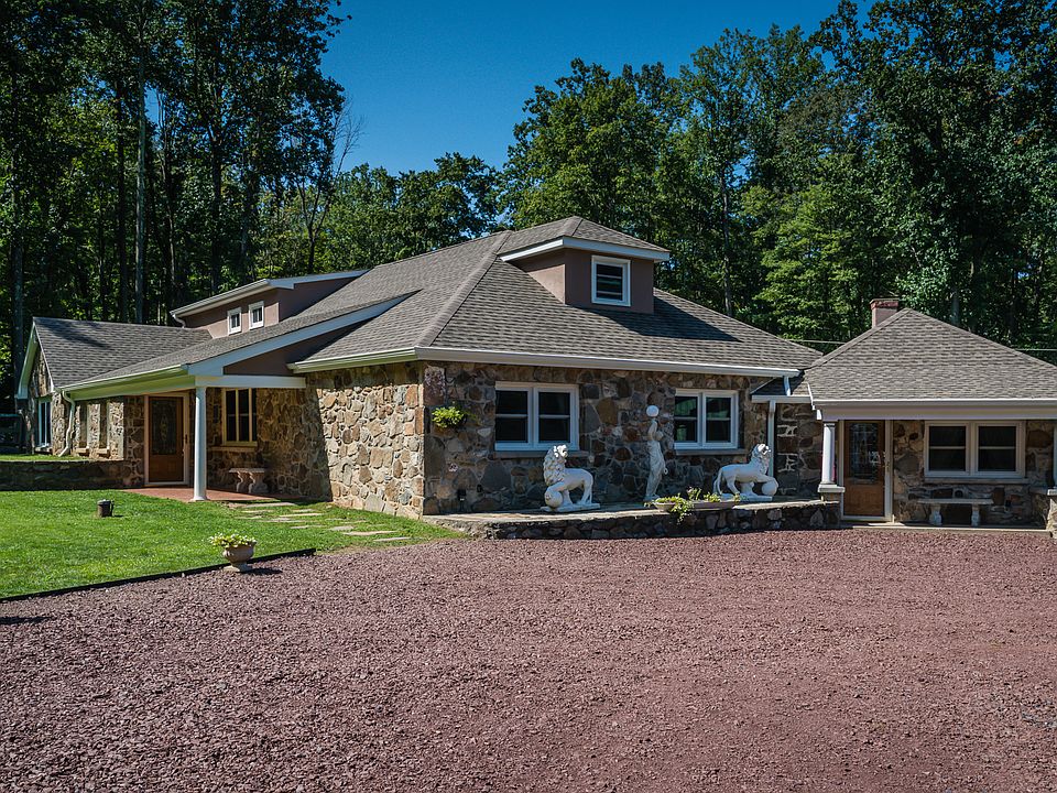 ***USE GPS 765 Rock Hill Rd and follow driveway between front two houses 765 and 777 Rock Hill Rd to reach this property*** Welcome to "The Entertainer"! This magnificent and secluded home is perfect for: large family gatherings, riding horses, riding 4-wheelers and more on 22.14 wooded acres! 313 Rock Hill also has could be a multi-generational home with potential for an in-law suite or office on the main level! And families that enjoy riding horses, 4-wheelers or run a business with vehicles this could be your property. Take advantage Act 319's reduced real estate tax program and you've got a winner! Your custom built stone home has the WOW factor of a master bedroom and a full bathroom on the main level. Add in an oversized, detached 2-car garage, a fenced areas for your pets to stay safe, a fish pond, a gentle running creek and the outdoor screened gazebo and you have an outdoor escape that you won't find anywhere else. Enter through the Pella front door to the large foyer that features porcelain tile flooring and upgraded moldings. To your right you'll see the magnificent living room with newer carpeting and the magnificent princess staircase that gently curves to the second floor. The living room was designed for relaxation and has an interior landing with hardwood floors and French doors that take you out to back patio and views of the fabulous screened gazebo and wooded lot. On the foyer's other side is a spacious and bright dining room with a magnificent built in China cabinet, hardwood floors and a beautiful bay window with bench seating that provides plenty of natural light and fantastic views of the side yard and pond. From the dining room there is a second staircase that takes you the upstairs bedrooms. Directly behind the dining room is your gourmet kitchen with: granite countertops; porcelain tile floors; a double stainless steel sink; cherry cabinets; stainless steel professional grade appliances; a room-length center island with plenty of seating for your family and guests. You won't run out of storage space in this kitchen for sure. From the kitchen you'll enter into the newly remodeled Butler's pantry through the arched doorway. This magnificent pantry has granite countertops, cherry cabinets, and hardwood floors plus you'll have even more room for food preparation, serving and entertaining! The spacious first floor master bedroom includes two sets of double closets and the remodeled downstairs bathroom features a beautiful corner glass shower, a cherry vanity with a granite countertop. And to complete the downstairs there is a beautiful family room / library with brick, wood-burning fireplace two built in bench seats on either side, gorgeous hardwood floors and a separate outside entrance - This room could also be used as a home office or additional bedroom. Upstairs you'll find two spacious bedrooms each with their own set of stairs down to the main level. Connecting the two bedrooms is a large Jack-n-Jill bathroom with quartz tile floors, a glass seamless shower, a gorgeous vanity and granite counter tops. Outside on this spacious property you get tranquil wooded views, a spacious back patio and then add the fabulous screened gazebo that comes complete with cable and electric and you have a fantastic outdoor space to entertain everyone! Other amazing upgrades include: a new roof, 4-zone HVAC and a propane powered Generac back-up generator, so you can relax during any potential power outages. About 90 minutes from NYC and a short drive to I-78 and the NJ border, this property provides owners with a full-time residence or a quiet and private weekend getaway. ** Includes America's Preferred Home Warranty **