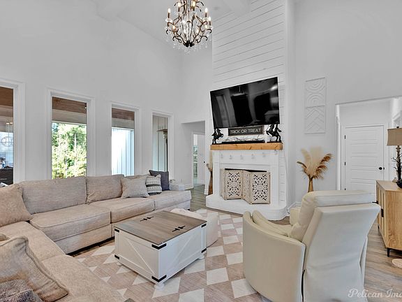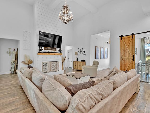 Custom-built home located in Plantation Subdivision of Stonewall, Louisiana. Secure gated community, 4-bedroom, 3-bath in North DeSoto School district. Exterior has custom siding, wooden beams, shutters and gable roof. Open floor plan with 16 foot ceilings in large living room with sculptural beams and beautiful chandelier. Fireplace extends to the ceiling. Separate dining room with wooden beams. Secluded master suite complete with a walk-in closet, freestanding tub, walk-through shower featuring a rain head, and dual vanities framed by ornate black mirrors. For added convenience a built-in power inlet box is ready for a whole-house generator. Fully fenced in back yard. The backyard has a slope. This home is not in a flood zone. Will come with a 1 year Guard Home Warranty with a favorable offer to the seller.