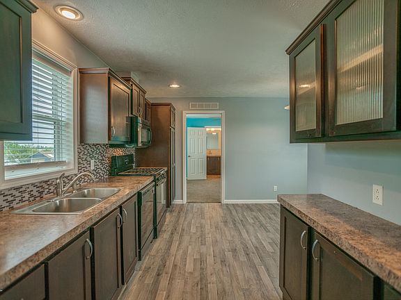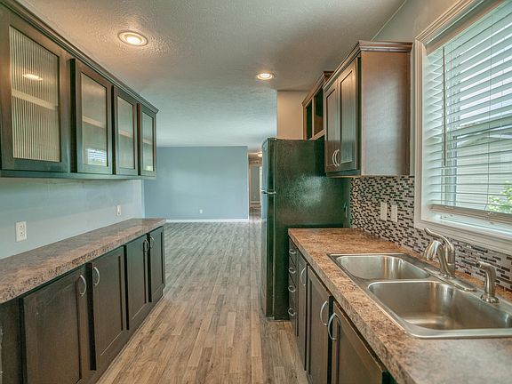 Enjoy affordable living in this 3bedroom 2 bath home on a rented lot on the south edge of town. This home has a master bedroom and bath, 2 more bedrooms and a full bath, open kitchen, dining, and living room with new flooring. This was a model home so has several upgrades. There are decks on both sides and room to rent extra lots if you want more space. Make an appt to see it today!