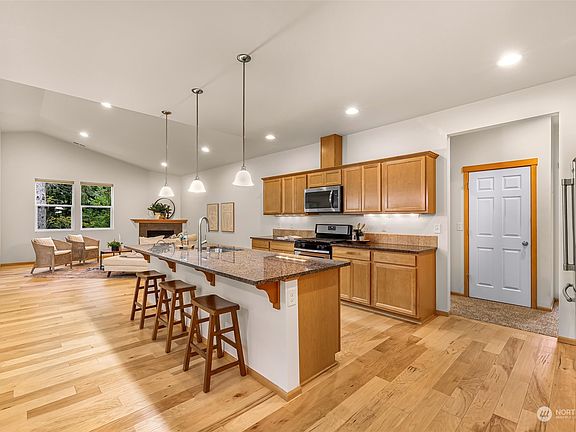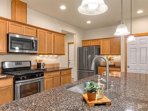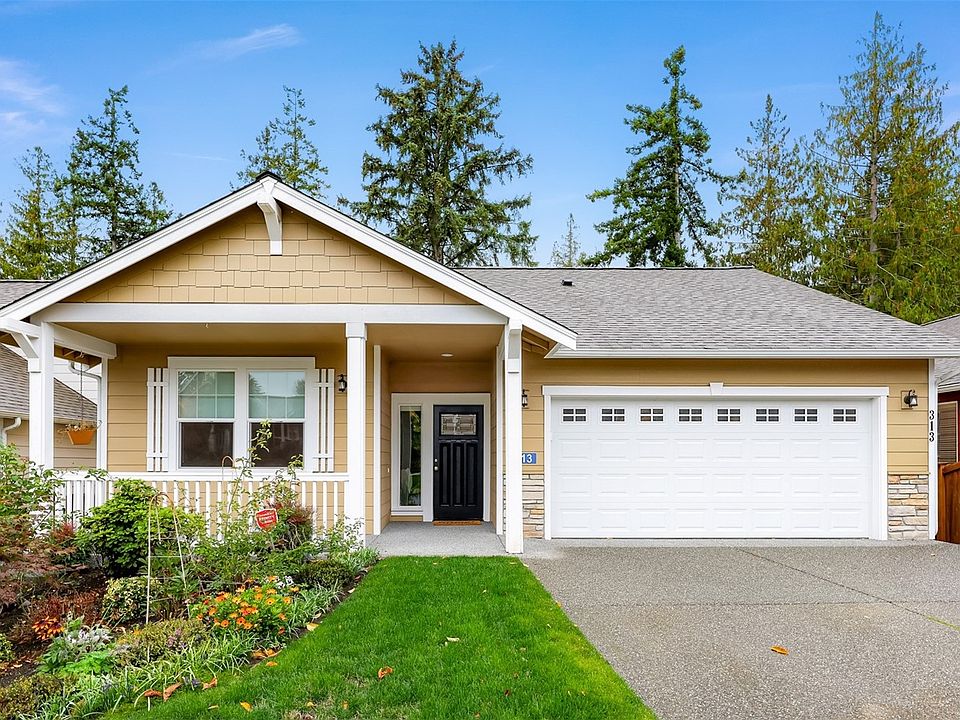 Discover the serene lifestyle of this vibrant 55+ Community, where your peace of mind is a priority. This single-level residence boasts an expansive kitchen/dining area that seamlessly extends to the outdoor deck, overlooking the greenbelt. The open-concept design brings together a cozy gas fireplace, a sunlit kitchen adorned w/granite countertops, smart pullout cabinet drawers, ample storage, & an oversized island. Large primary suite w/generously sized walk-in closet. French doors beckon you into the den, perfect for relaxation or productivity. Lawns maintained by HOA! Enjoy effortless access to I-5 for your travel needs, nearby hiking trails & parks for outdoor adventures, as well as a variety of shopping, dining, & medical services.