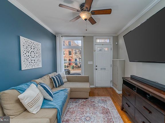 A perfect place to call home. Just one block from Patterson Park and a short distance to the waterfront, shops, restaurants, and all that Baltimore has to offer. Enter into your rowhome featuring wood floors and crown molding with a great layout. The living room is large enough for a big couch and space to relax. There's a separate dining area right before the updated kitchen with stainless steel appliance, butcher block counters and a farmhouse sink. At the rear of the house you have a half bath- so convenient, especially when entertaining! Out the back door is a great fenced in patio to enjoy summer nights. On the second floor you have a nicely sized primary bedroom along with a great flex space- perfect as an office, sitting room, or workout space. Through the flex space you have a large closet and laundry space and a full bathroom with jacuzzi tub. There's already a door installed so you can easy have a deck put on the back! If you're looking for a beautiful well maintained home in close proximity to everything, look no further! Buyers could be eligible Johns Hopkins Live Near Your Work Grant. Water heater 6 years old. Roof 1 year old.