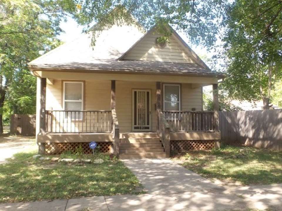 Super cute 3-bedroom, 2 full bath bungalow near both Friends and Newman University! 10 foot ceilings throughout the home, along with bullnose corners! Kitchen offers granite tile countertops, large eat-in dining space, all kitchen appliances remain with the home! Basement / cellar offers great storage space! Spacious composite front porch and huge backyard with privacy fence. Private drive for off-street parking!