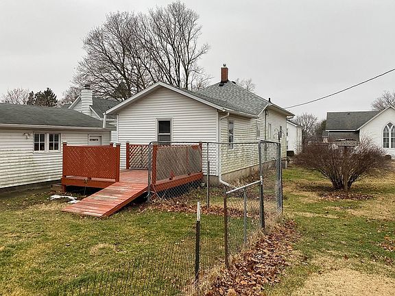 This ranch home sits on a 0.17-acre city lot. It offers 2 bedrooms, a full bathroom, a living room with dining area, main level laundry closet, eat in kitchen, and rear family room/possible 3rd bedroom. There are front and rear enclosed porches. Two built-in display cabinets as well as beautiful natural woodwork and leaded glass windows show the character of this home. An oversized one car garage is available on site with an asphalt and concrete drive. Owner reports that a new furnace was installed in 2021, a new CAC fan motor in 2017, the roof was replaced in 2014 and that the home was resided in 2013.