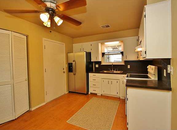 Move in Ready! So many updates. Wonderful house on large treed lot with updated kitchen and baths. Both bedrooms are large with ceiling fans and great closets. The indoor utility room has storage space. The kitchen has been updated with newer appliances, counter tops has a large pantry. You will love the lot! Has great outdoor patio, storage building, storm shelter and new windows.