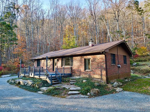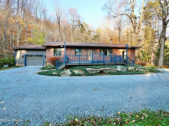 You're going to fall in love with this secluded ranch home, situated on over 5 acres! This is the perfect starter or retirement home, with minimal upkeep required, and a full unfinished basement for storage or future expansion. The front porch is the perfect place to sip on your morning coffee while overlooking the private pond. This property is just a short drive to town and Lake Wallenpaupack, has low property taxes and NO HOA fees. Schedule your private tour today before it's gone!