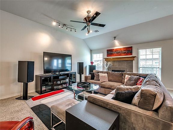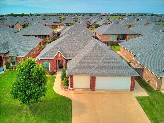 ALMOST BRAND NEW in Moore Schools! Open floor plan, hard to find in this addition. Close to schools, shopping, & restaurants. The interior living area has up to date decor & remote controlled fireplace. Light and bright w/ vaulted ceilings throughout. The dining area has a walkout to a covered patio and a fully fenced yard with a propane grill hook up. Kitchen has granite countertops an island breakfast bar, new stainless steel appliances, and an extra deep pantry. The study has built-in shelving and French doors. The Master bathroom has a walk-in shower and garden tub as well as double vanities. The walk-in closet has custom shelving and 3 tiers of clothing storage! 2nd bedroom has a walk-in closet.3rd bedroom has a double door closet. Extra linen storage in the hallway. Cheery laundry room with custom cabinetry and counter space to fold opens into the 3 car garage with shelving, dedicated freezer circuit, and a storm shelter. The attic is floored for even more storage! IMPECCABLE!