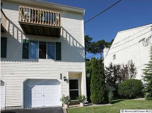 This Lovely Corner Unit has 2 bedrooms, 1 full bath, and two half baths. Balcony off master bedroom. Updated Kitchen and baths. Click on photos to see the charm of this townhouse. Has small back yard off family room for garden. Garage and driveway a plus. Ready to move in and enjoy living on the Jersey Shore close to the NY Ferry, Sandy Hook State Park, hiking and bike trails. Convenient to NYC Midtown ferry.