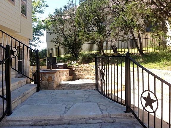 Great Views of Lake Travis w/this one from both levels on this one and especially from the deck. Just finished painting the property inside and out and carpet as well. Deck runs almost the entire back of the home. 2 rooms up and 2 rooms down stairs, all living areas are up. Front patio area features a built-in BBQ smoker and an outdoor sink area for entertaining. Very light & bright