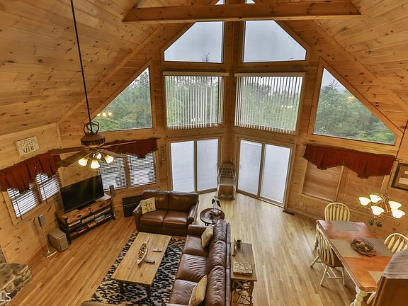 Amazingly peaceful and private cabin with serene long-range mountain view. Everything you dream of for your mountain escape with 3 levels of living space to entertain and relax for the weekend or full time. Each bedroom is spacious and have private decks. Outdoor area with wood burning fireplace is screened and spacious for all to enjoy the quiet woods and mountain view. Terrace level with additional fireplace, pool table, hot tub and great living space also features spacious bedroom and bath. Fully furnished and ready for you so that you don't waste a minute before you can start winding down and getting away from the stress of everyday living. The mountains revive and refresh.