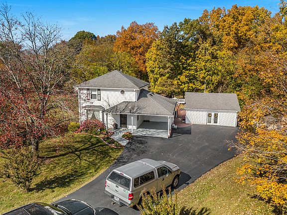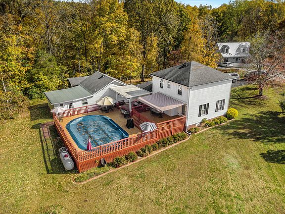 Beautiful country home with acreage and all the amenities including security system! Electric, lighted 20x12 awning over back deck surrounding a Large, oval above ground pool with new liner in 2024 for summer fun! This property has a cozy Mother in law cottage with plenty of room and murphy bed for guests or rental income! Lovely, flowered landscaping around home! Septic tank serviced last year! Appliances in home and cottage will stay with home! Home with 4 sheds for farm life and hobbies! Over 4 and half acres with pasture and woods 11 mature walnut trees! No houses either side in backyard for privacy! 4 golf courses in the area! HVAC replaced in 2022 with a 10yr warranty. Home generator plug accessible outside conveniently. Propane gas tank on the property for heating unit! Master bedroom has a tray ceiling and the stairs have a safety gate that seamlessly blends in with the wall when not in use for dogs and children.