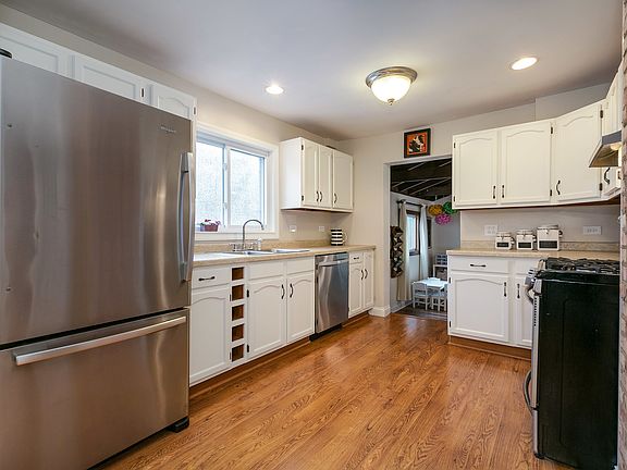 Super cute cape cod close to everything! Open floorplan allows for flexible use of front room. Light and bright kitchen features white cabinets, stainless steel appliances. First floor bedroom and full bath with two additional bedrooms and one bath upstairs. Family room with vaulted ceilings and exposed beams. Back yard fenced in with pergola covered deck. Basement partially finished to use as play room, office, workout room. New roof and driveway in 2018. Newer HVAC, windows and appliances.