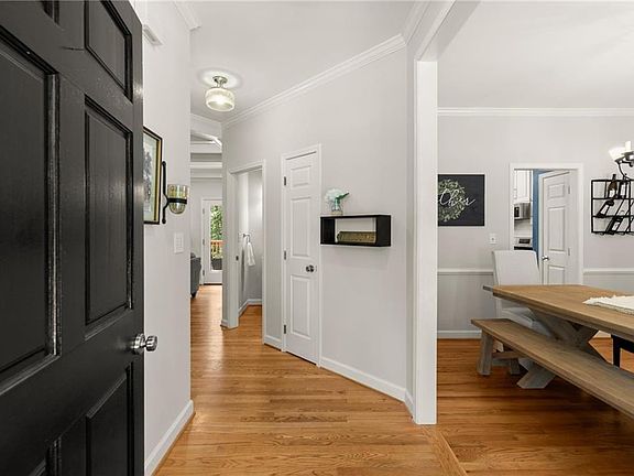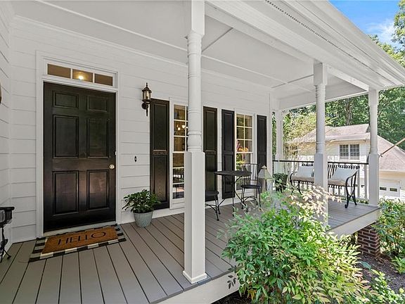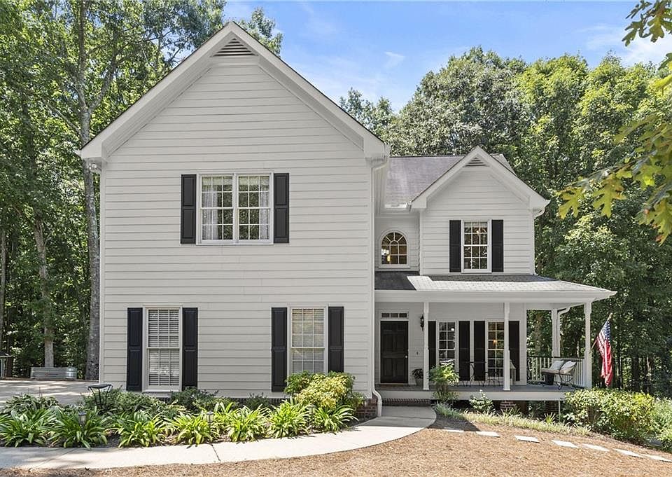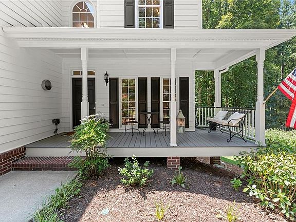 Welcome to this picture-perfect home nestled on a premium cul-de-sac lot in the desirable Orange Shoals Greenbelt community. From the moment you arrive, the inviting front porch and spacious front yard set the tone for lots of charm and character! Step inside to a light-filled foyer flanked by a separate dining room, leading into a beautifully updated kitchen with stone countertops, designer backsplash, and newer appliances. The kitchen opens to an expansive deck that overlooks a serene, wooded backyard—your private retreat with direct access to miles of community trails. The fireside family room with coffered ceilings and gleaming hardwoods offers a cozy yet refined space to unwind. Upstairs, the charm continues with a spacious Primary Suite and spa-inspired bath, three secondary bedrooms, a computer nook, and thoughtful touches like built-ins and designer lighting. The fully finished terrace level adds versatility with a full bath, two separate flex rooms including one with a ventless fireplace and 5th bedroom space(currently used as a home office). Enjoy fall evenings on the well appointed deck, by the firepit, or unwind under the covered patio. Located less than 5 miles from top-rated schools (K-12), shopping, dining, Northside Cherokee, quaint downtown areas like Ball Ground and Canton, the Cumming City Center, as well as a hop and a skip from Milton|Alpharetta areas. This home offers peace, privacy, and access to a vibrant, nature-loving community.