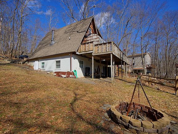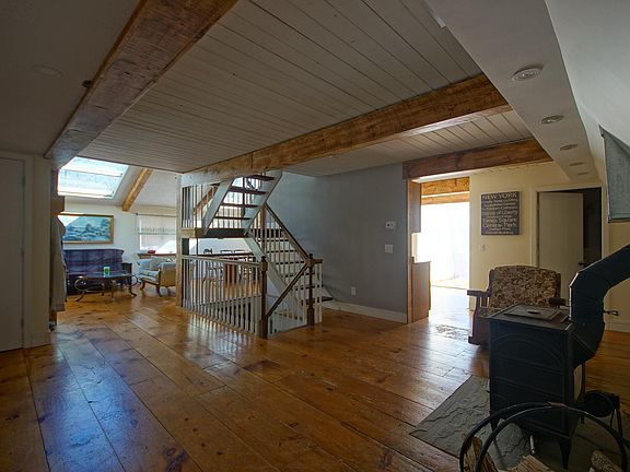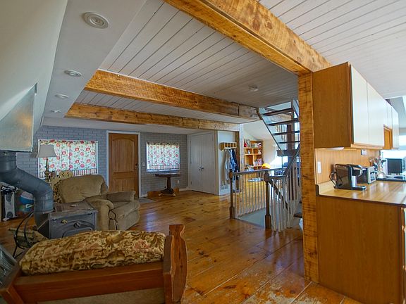 Come take a look at this UNIQUE 3 bed, 2 bath, A Frame style home with many UPDATES in recent years. Charming Open Floor plan featuring cathedral ceilings with exposed beams and 2 big skylights that bring in lots of natural light. Original Wide Plank Pine Wood flooring throughout. Functional kitchen with sun room and family room with wood burning stove. Lower level features Master bedroom w/ full bath and recreation room with a bar area. Master bath has RADIANT HEATED FLOORS and free standing soaking TUB for you to relax in. Or you can enjoy long nights with friends at the home bar that exits to back yard. PROPANE Forced air heating, & Central A/C system PLUS dehumidifying system for the ENTIRE house, close to town, easy access to I-80 for commuters. MUST SEE to appreciate this lovely home