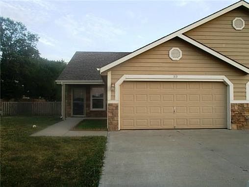 Nice three bedroom two full bath half duplex. Home offers a spacious living room, eat-in kitchen, laundry room and two car garage. Patio in the back. Walk to award-winning elementary school. Gardner-Edgerton School District. Small dog may be considered - No Cats.