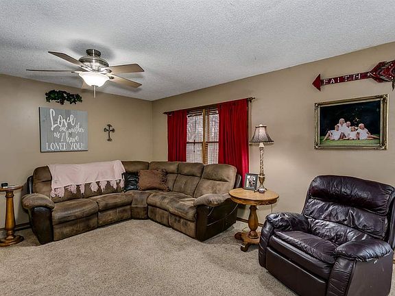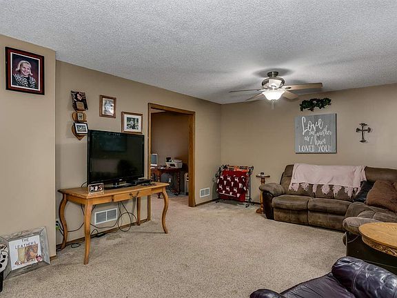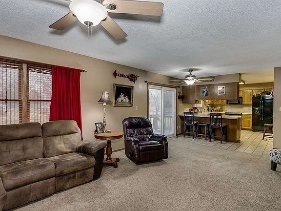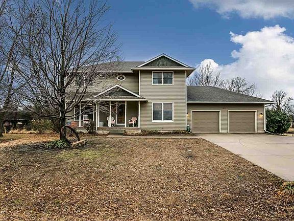 If you're looking for space and a great value--look no further. Get out of the city and enjoy small town living in this 6 bedroom, 4 bathroom, 2 car garage home on a quiet cul-de-sac. Main floor features foyer, office space, living room, open kitchen, one half bath, and a formal dining room. Upstairs you'll find 4 bedrooms, 2 full bathrooms, and the laundry room. The basement is home to a great theater room/family room, another full bathroom, and two more bedrooms, plus much more storage. Neutral paint colors throughout. Composite deck with awning for shade as you sit on your back deck and enjoy views of the Euphrates Creek and the setting sun. The front porch is also covered for additional outdoor enjoyment. Mature trees and expanded concrete drive for easy parking or a game of basketball. Over-sized garage has plenty more storage, built-ins, a work bench, and has a custom-designed space for folding chairs. You will love the setting and this neighborhood which is close to the Bartlett Arboretum and a short drive to Wichita, too. Location, location, location! Sellers will purchase a home warranty for the new buyer ~ Welcome Home! Call for a private showing! Any info should be independently verified.