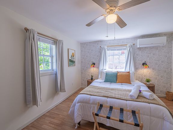 Welcome to Maple Street Manor - a classy and stylish farmhouse in downtown Johnson City. This listing is comprised of an upstairs 2 bdrm / 1 bath apartment with a separate entrance located in a modernized 100 year old farmhouse. You will have use of an expansive wrap around front porch with swing and rocking chairs and shared use of a large fenced in backyard with hammocks, bbq, and large dining area. In unit washer / dryer, fully stocked kitchen, linens, etc.....Just bring your suitcase.