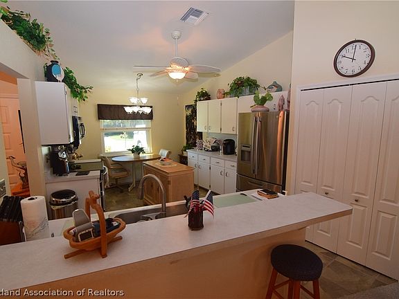 A great home in Lake Damon Villas of Avon Park. This home features upgraded thermal pane windows, lighting, and appliances. It has a split floor plan, vaulted ceilings, and larger bathrooms. The formal dining is set up as an office now; there is a breakfast nook in the kitchen. There is a clubhouse and heated pool, along with a paved cart path to River Greens Golf Course. In addition to the $25 monthly fee, there is a annual fee of $150 for irrigation.