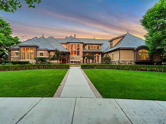 Experience unparalleled luxury in the prestigious gated community of Stone Gate, tucked in the coveted Provo River Bottoms. This 12,107 sq ft estate on a .84-acre lot is perfectly positioned directly across from the Provo River, creating a serene setting with the gentle sound of flowing water. A stately, tree-lined driveway sets the tone as you approach this exceptional residence, blending timeless elegance with modern comfort. Inside, the home showcases expansive living spaces designed for both entertaining and everyday living. The gourmet kitchen features top-of-the-line appliances, a butler's pantry, and abundant prep space for hosting gatherings of any size. Multiple dining and family areas flow seamlessly, accented by soaring ceilings and expansive windows that flood the home with natural light. The walkout basement is a destination of its own, featuring a full second kitchen, home gym, indoor sports court, sauna, and a private swimming pool just outside, perfect for year-round recreation and wellness. The home's thoughtful design includes luxurious bedroom suites, spa-inspired bathrooms, and versatile spaces for work or play. For added convenience, the home features a private elevator servicing all levels. Enjoy endless recreation and convenience with Stone Gate's exclusive amenities, including sand volleyball, tennis, and basketball courts, and a community pool. With its prime location, expansive living spaces, and resort-style features, this estate offers the ultimate combination of privacy, luxury, and lifestyle. Reach out today for your private showing. Buyer/Buyers Agent to verify all info.