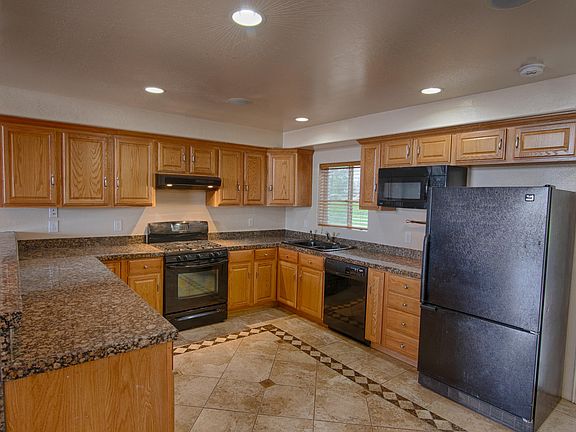 Come and claim your castle! This gorgeous 5 bedroom+ den, 3 bath home has room for everyone. This open great room floorpan is perfect for family gatherings or entertaining and has a well appointed kitchen featuring granite tile counter tops, breakfast bar, gas stove, plenty of oak cabinets, a pantry and more. There's a perfect balance of beauty and function with this home. The detail in the tile, inlays, and stone masonry work throughout is incredible. Maintain comfort and cost as this home has not one, but two thermostat/AC controls operating each side of the house. There's a lovey loft space with a woodstove perfect for the cozy, book worm nook. The home also features a speaker system throughout! Want to spend time outside? Enjoy the two balconies or the manicured yard and fruit trees