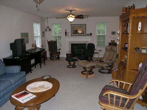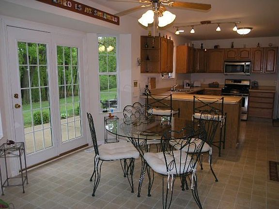 Just perfect for those lazy summer days! This 3 BR, 2.5 bath home has a nice sized yard w/ huge patio & backs to trees. This home also has a 3 car garage w/ an RV parking pad alongside. Wood floors flow throughout DR, hall & 1/2 bath. Spacious kitchen w/ breakfast bar open to the large Family Room. Master has vaulted ceiling & double vanity. Basement offers 9' ceilings, rough in for bath, built in shelves as well as a high efficent furance & water heater. Covered country front porch w/ fabulous curb appeal.