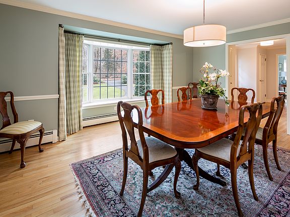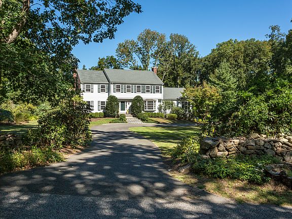 Sunny five bedroom colonial on 1.5 private flat acres surrounded by stone walls and mature landscaping. A circular drive provides access to this well known walking neighborhood and beautiful Lee Gardens. A great layout, nicely proportioned rooms and a connected kitchen/family room optimize existing space. LL potential and existing wine cellar. Both deck and terrace are sited for privacy and enjoyment of this beautiful property. Just right as is with plenty of opportunity to dream big.