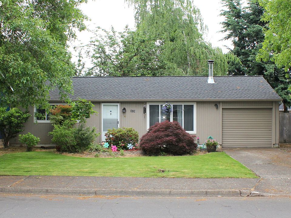 Adorable ranch style home with a gorgeous landscaped yard. This home features an open concept living room, dining room and kitchen. A vinyl sliding glass door opens to your entertainment ready back yard. The kitchen is nicely updated with granite countertops and newer laminate floors and throughout the living space.