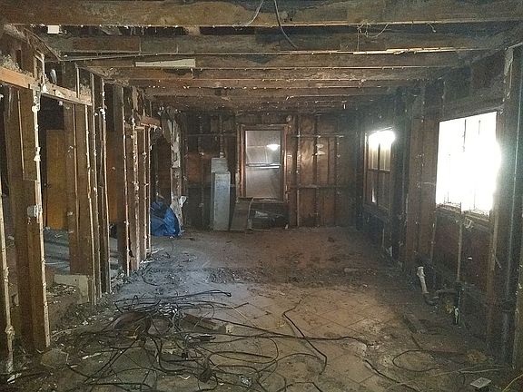 This 1.5 story home has 3 bedrooms and over 1300 sq ft to enjoy. The house had a fire in second floor. It is being sold as is. The interior has been stripped to the studs ready for renovation. There is a newer and functioning electrical panel. Would be willing to pay up 3% buyer realtor commission. There was a fire in the second floor and several of the rafters will need to be replaced or joined and some of the roof will need to be replaced. All plumbing, electrical and HVAC will need to be rebuilt. City permit clause states, “If you put more than 50% of the value into the house it must be brought up to current code and raised above the 100-year flood plain”. Because of the 50% rule, these need to be addressed. - The foundation on the north west corner is 2.1 feet too close to the property line and is required to be moved. - The first floor will need to be raised to the 100-year flood plain, which is marked by a pin in the telephone pole. - Last direction given by city chief inspector was that the basement needed to be backfilled. Lot survey and elevation survey available.