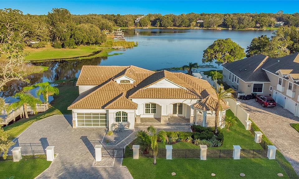 SELLER FINANCING IS AVAILABLE. We also have financing assistance available through our preferred lending partner, offering a traditional fixed mortgage at 5.8% for a 30 yr fixed. Sellers are also willing to consider a rate buy down to help buyers get the lowest rate possible if financing. Welcome to this gorgeous two-story, five-bedroom, four-bath luxury waterfront home located in one of the most desired areas of Orange County. Built in 2016 and recently renovated, this 3,878 sqft home will be one lucky buyer’s Florida oasis. Located on a professional ski lake, dock all your water toys on your private dock and enjoy year-round water sports. Enter the custom double doors to soaring ceilings, lakefront views, and architectural details in almost every room. To the left is the formal dining room with a crystal chandelier, a butler pantry with a wine rack, and hardwood storage cabinets. Ahead is the open-plan gourmet kitchen, breakfast nook, and family room with a built-in fireplace and seating area ideal for entertaining. Dedicated to the entire East side of the home is a master retreat that can comfortably fit a king bed and french doors leading out to the pool. A shoe closet, as well as his and hers, built-in closets greet you before arriving at the luxurious master spa. Here you will find separate vanities sitting on granite tops, a Jacuzzi tub, and a separate walk-in shower with dual shower heads. Head upstairs and you will find a loft & wet bar with an in-home theater ready to be transformed into your own personal entertainment area. Outside is what sets this amazing home apart from all the others. Walk out into your stunning backyard oasis, equipped with a summer kitchen, covered lounge, infinity pool, and plenty of space for entertaining. All overlooking Lake Rose, a top-rated water skiing lake with private access. This captivating home is an excellent NO HOA find and ideally located minutes to the expressway, hospital, shopping, and restaurants, this Florida home is truly perfect for the Florida lifestyle.