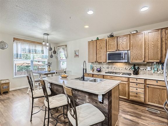 Presenting a stunning two-story residence in the heart of The Preserve. Situated perfectly on a coveted corner lot this spacious home boasts 4 beds w/ 4 baths, finished basement, & 3 car garage. The heart of the home is the gorgeous gourmet kitchen: stainless steel appliances, kitchen island, double ovens, four-burner gas cooktop, & pantry. As you venture downstairs, you'll find the beautifully finished basement, complete with a custom wet bar featuring a pine beetle countertop adorned w/ turquoise accents, truly a conversation starter. The basement also boasts a cozy bedroom with a 3/4 bathroom & bonus room. The family room is a masterpiece, highlighted by a magnificent floor-to-ceiling fireplace w/ charming wood accents. The barn door window coverings & vaulted ceilings add a touch of rustic charm to the contemporary design, creating a warm and inviting ambiance throughout. The upper level primary bedroom is a sanctuary in itself w/ a five-piece bathroom, walk-in shower, luxurious soaking tub, dual sinks, & spacious walk-in closet. The upper level is complete with 2 addl bedrooms, full bathroom, and laundry room. Outdoor living is equally delightful; huge patio & a stylish pergola, providing the perfect setting for outdoor gatherings & relaxation. Top it off with a hot tub promising moments of tranquility under the stars. The three-car tandem garage offers ample space for your vehicles and all your gear. Beyond these captivating features, this home is energy-efficient designed to save you money on utility bills; spray foam insulation to the ENERGY STAR appliances, programmable thermostat, & low E2 vinyl windows, every detail has been carefully considered to optimize efficiency and reduce environmental impact. Located just minutes away from historic downtown and with easy access to I-76, this home offers the perfect balance of modern convenience and small-town charm.