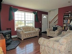 Picture of charm cape on 2.33 acres. Large picture windows taking in luscious distant eastern views. Main level master with full bath. Efficient soapstone woodstove in living room, provides alternative heat source for whole house. Dining room with sliders and access to back deck. Upper level recently completed adding 2 bedrooms , office and tiled full bath. Wood flooring on both levels. Full, unfinished walkout basement with high ceilings. Large level front lawn setting home back from road. High-speed dsl internet connection.