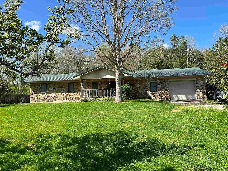 Many memories have been made in this very nice well maintained Ranch home in Boyd County! Whether you're STARTING OUT or SLOWING DOWN and looking for a 'RETIREMENT FRIENDLY' One Floor Plan home in a country setting, yet still close to most everything, then look no further! This stone ranch home sits on 1 Acre +/- and has 4 BR's, 2 Bathrooms and a 1 Car Attached Garage with 1679sqft. The Kitchen comes fully equipped with all appliances so plan your first dinner for the family on move-in day! The laundry room is large enough for not only the washer and dryer, but great for a pantry area as well. The primary bedroom has a full bathroom with a walk-in shower. There are 3 Bedrooms on one side of the house and then a large bedroom on the other side. Sit out on the front porch and enjoy the peace and quiet. (The large detached garage IS NOT a part of the sellers property). White vinyl windows throughout.