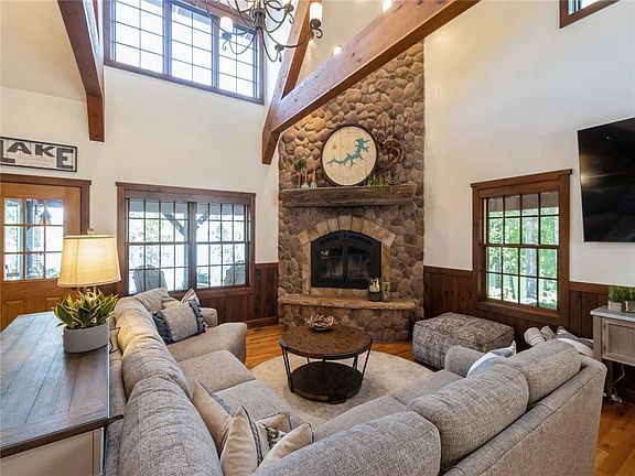 Welcome to your lake paradise! Stunning property on one of the best points on Sun Valley Lake! Custom kitchen with granite countertops, icemaker, separate beverage coolers and huge double oven, just to name some of the amenities. Each bedroom has its own bath for added luxury and privacy. Additionally full bath in the exquisite Primary bedroom along with two other half baths for convenience! Relax in the four seasons room, choose the great room or huge wrap around porch - both with fireplaces! Downstairs you will find the best entertainment spot on the lake with a newly finished high-end bar that opens to a stunning lakeside patio! New landscaping, irrigation system, lake equipment storage area and so much more! When you come check this exquisite property out, don't forget the double car heated garage, built in waterfall feature that runs along the porch, geo-thermal heating system and private floating dock! 2025-12-05