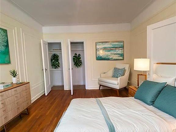 Large roomsLots of closetsBright and spacious apartmentSecured entrance and hallwaysNice hardwood floors