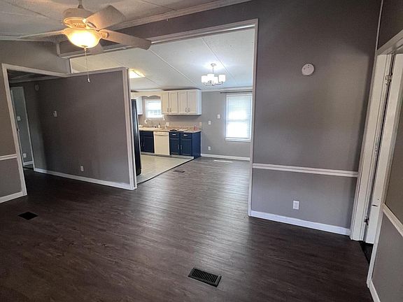 3 bed 2 Bath Manufactured home with large 2 car detached garage sitting on .50 of an acre. This home features grey paint with white trim along with beautiful laminate flooring throughout. Kitchen newly updated and features stainless appliances. The detached garage measures 24x36. Bring your boat and all your toys, and make this your new home.