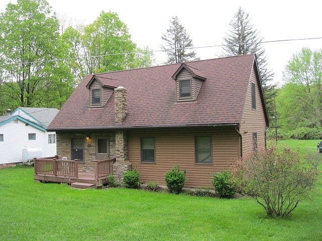 Move in and enjoy this Cape Cod. First floor room addition with cathedral ceiling. All new interior and kitchen. New hardwood, ceramic, and vinyl flooring. New furnace, hot water tank, pump, and electric. New exterior includes roofing, trex deck and porch, soffit, vinyl siding, and windows on house. Vinyl siding on garage. Low maintenance living, furnished, Franklin stove, Anderson windows. level yard, easy access to Allegheny River.